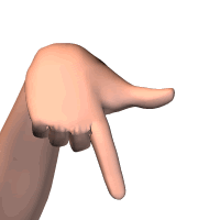 親指と人差し指を伸ばし下に向ける。フの形にする。
