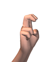 2本の指をカギ型にする。カタカナのロの部分をかたどる。