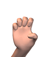 親指と4指をカギ型にする。eの形。